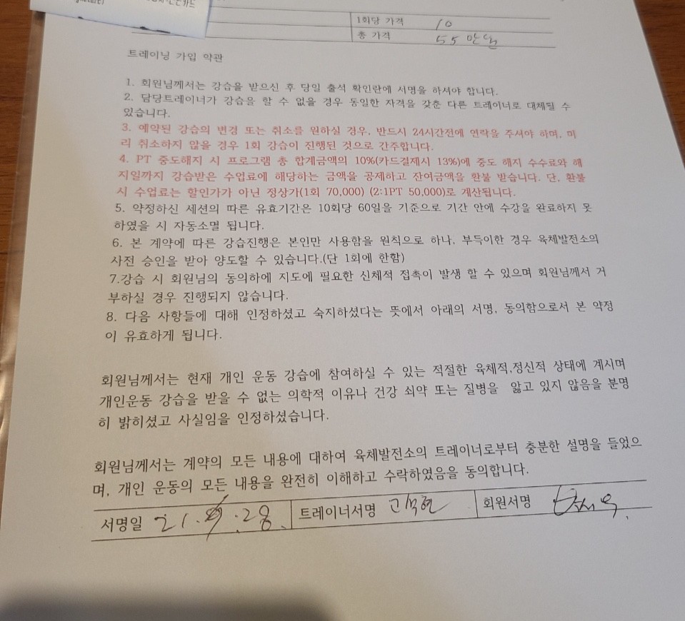 특히 운동 후에 트레이너님이 따로 시간을 내서 그날 운동에 대한 내용을 정리해주시는 건 정말 대단한 정성이라고 생각하는데, 정리하면서 회원에 대해 한번 더 생각하면서 다음 수업을 준비해주시지 않을까 싶어요