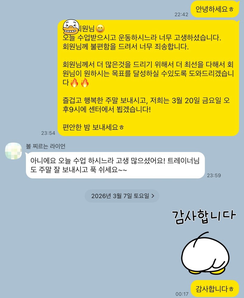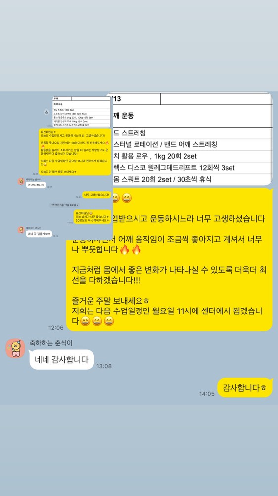 앞으로도 아픈 부위에 무리가 가지 않도록 세심하게 지도하면서, 필요한 근력은 확실하게 키울 수 있도록 도와드리겠습니다💪