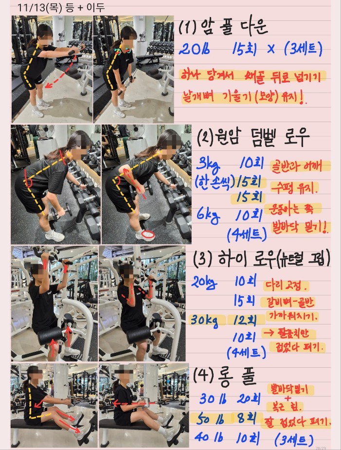 곧 군대에 가게 될 예정이라 그 이야기를 했더니, 트레이너가 내 상황에 맞춰 딱 알맞은 루틴을 짜주셨다.