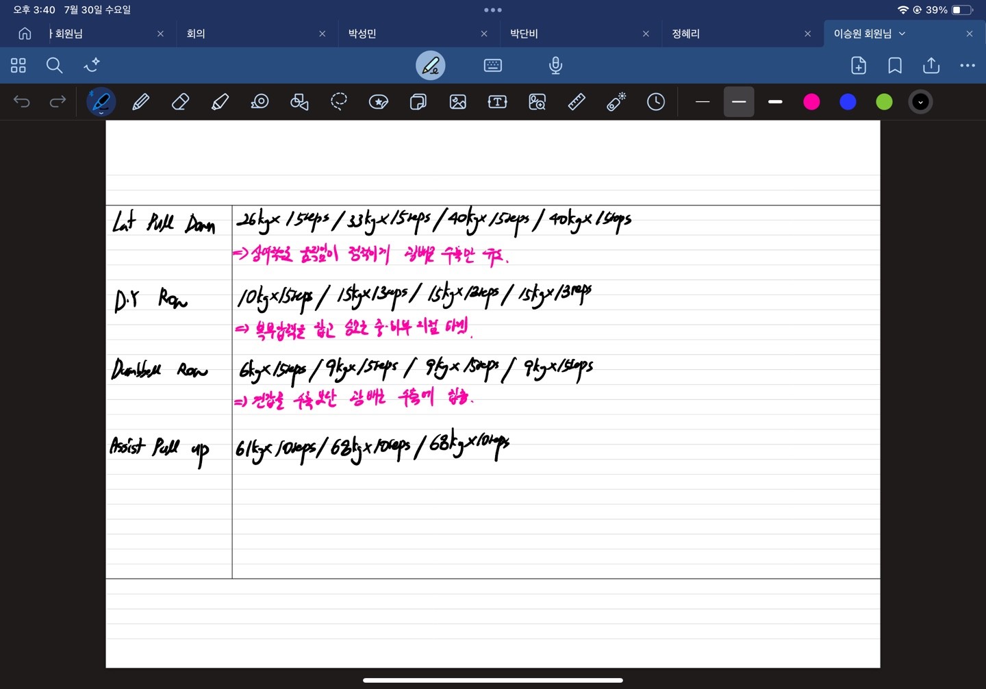 아! 그리고 매 수업 끝날때마다 운동일지 작성해서 보내주시는것도 인상깊었습니다🫶🏻🙇🏻♀️