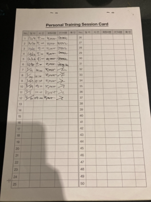 진짜 이렇게 체계적으로 기록해가면서 하는 피티는 처음이고, 제가 만나본 선생님들 중 제일 잘 가르쳐주세요. 가장 중요한 부분을 항상 놓치지 않도록 짚어주시고, 무엇보다 운동하는게 재밌다고 느껴지는게 처음인 것 같아요. 수업 외에 혼자 운동할 때, 이때까지는 습관이 들지 않아 어떤 운동을 해야할지 항상 헷갈리고, 운동능력도 제자리걸음인 제 모습에 흥미를 빨리 잃어버리곤 했는데, 지금은 조금씩 성장해가는게 너무 재밌고 욕심도 생겨요. 무엇보다 건강해지고 있는 것 같아서 정말 좋습니다!! 제 선생님이셔서 감사합니다 ㅜㅜ