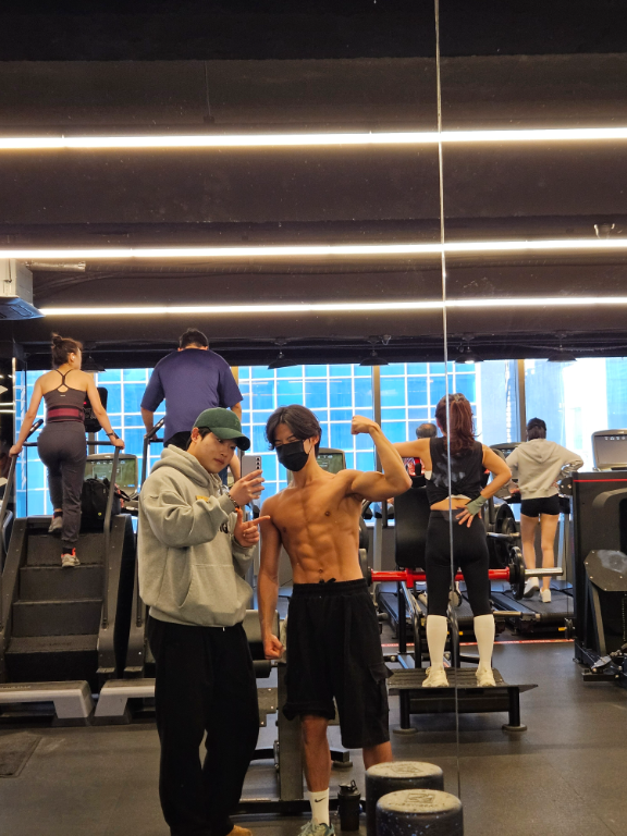 시언쌤이 이끌어주신 덕분에 몸 진짜 멋있게 만들었어요. 이 사진 찍고 다다음날 바디프로필인데 덕분에 엄청 멋있는 몸으로 바디프로필 찍게되었네요. 헬스장 분위기도 다른 선생님들도 간간히 찾아와서 몸평가해주시고 같이 즐겁게 운동했습니다.