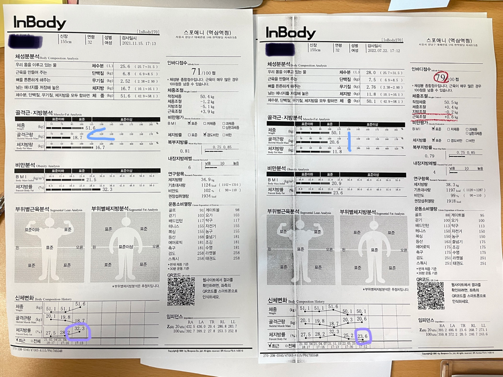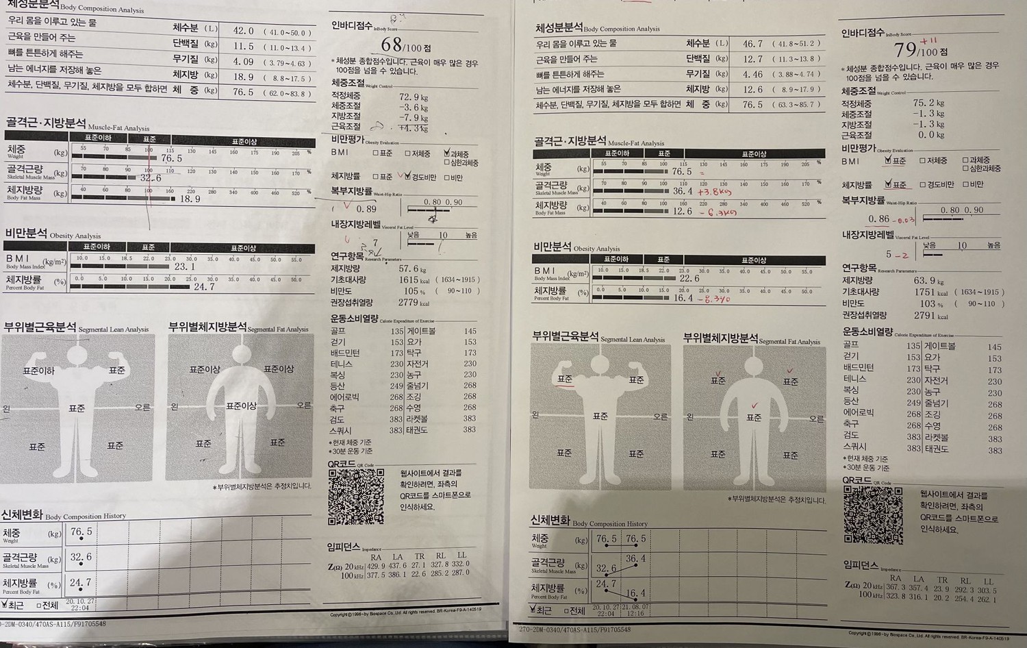 PT 시작 후 멈춰 있던 체지방률이 줄었어요.