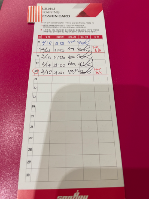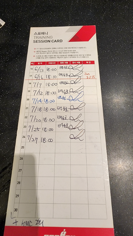 그날 그날 무슨 운동했는지 기재하시고, 찍어가게 해주셔서 복습 철저히 할 수 있게 해주셨어요!.!