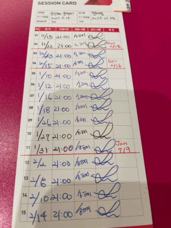 코로나 이후로 몸이 많이 안좋아지고 의지도 약해졌는데 다시 쌤과 운동하려고 또 신청했습니다. ☺️