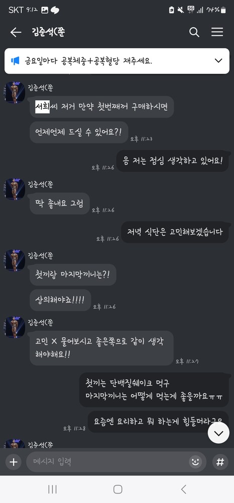 계속되는 야근과 당뇨로 몸이 허약해지는 것을 느껴 피티를 쌤께 받았습니다.