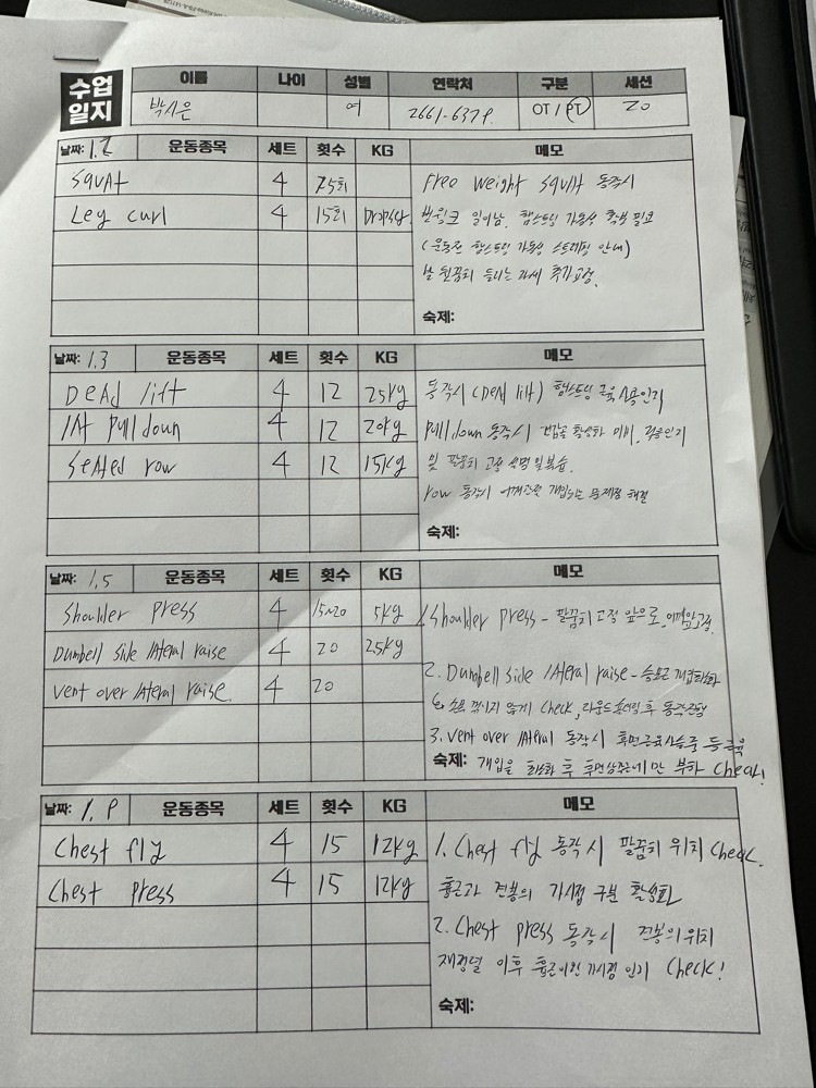 자세 하나하나 어떤 근육에 힘이 들어가야 바른 자세인지 알려주시고 운동일지도 항상 꼼꼼하게 작성해주셔서 개인운동 나갈 때도 잘 할 수 있게 만들어주셔서 넘 좋아요^__^