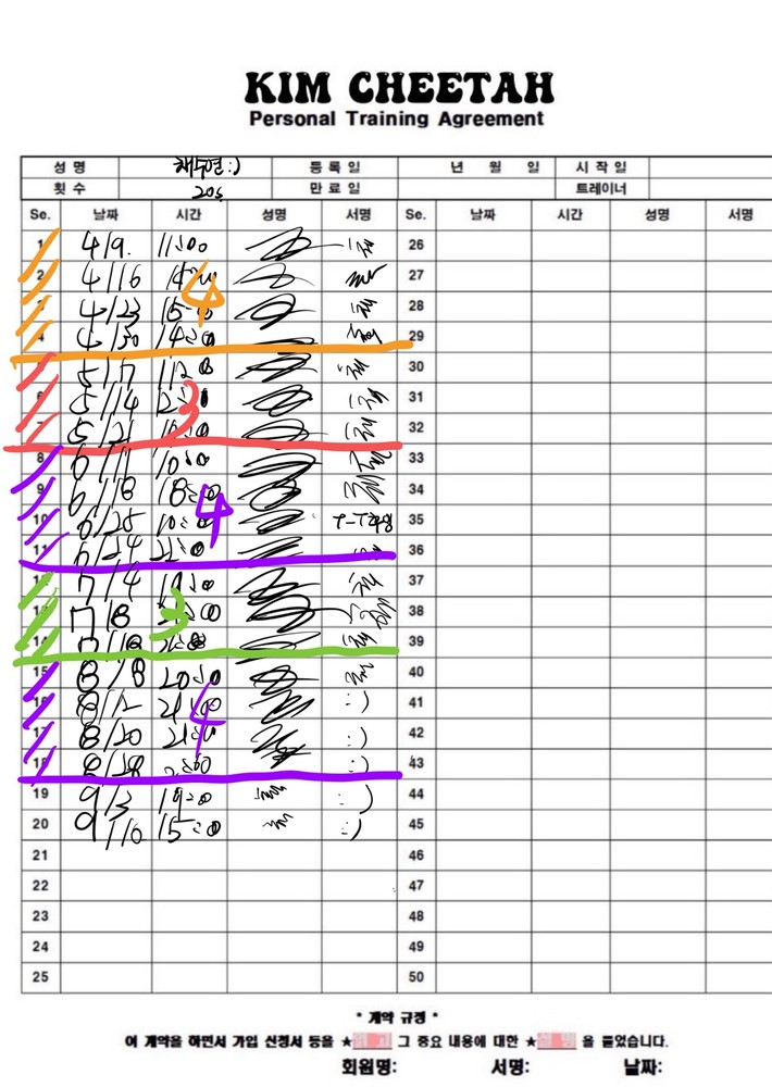안녕하세요! 운동의 ㅇ도 모르고 운동의 기초지식도 모르던 상태에서 건강도 자꾸만 나빠지고, 살도 점점 불어만가 고민 끝에 치타쌤에게 첫 pt를 받았던 회원이였어요 .