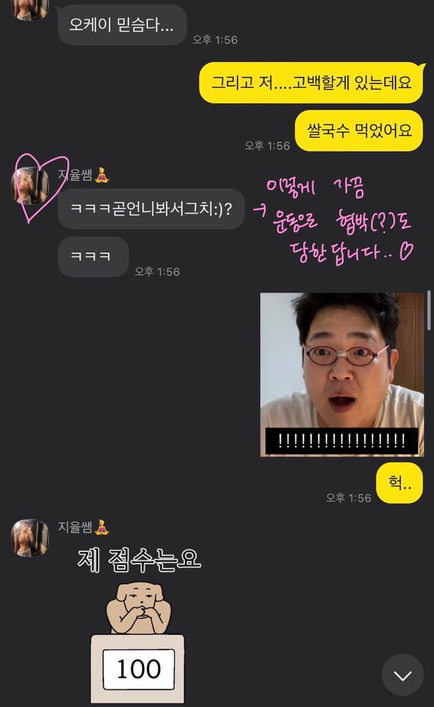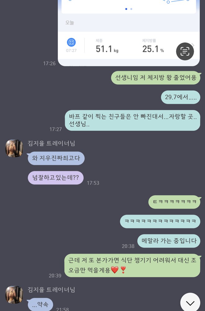 선생님께서 알려주신 운동 지식으로(자세 등) 지금도 운동을 병행하는 중이에요 💪💗