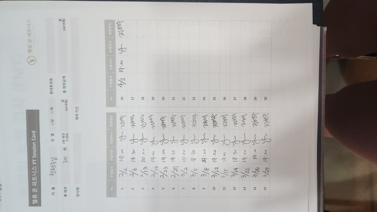 여기서 1회 체험 후, 바로 30회 pt 등록했어요