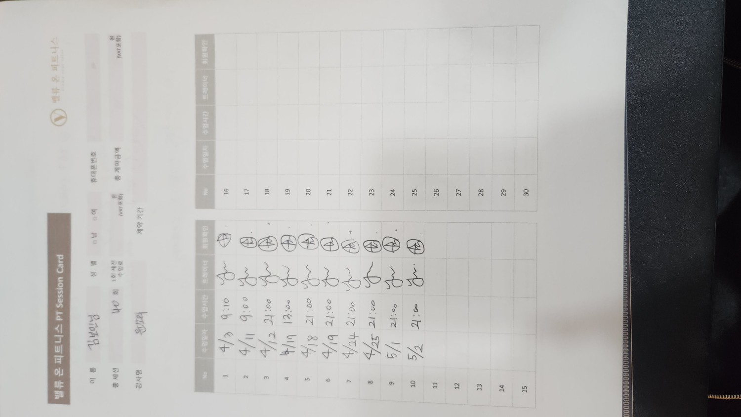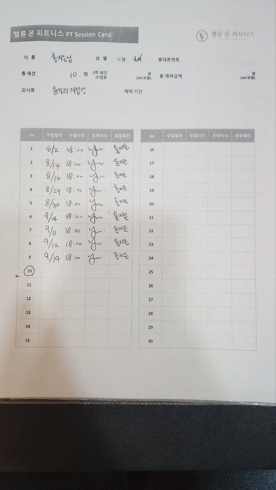 매주 제 몸에 맞는 운동으로 짜주시고 pt수업이 끝난 후에 그날 한 운동일지도 매번 써서 보내주셔서 pt수업이 없는날에도 도움돼요 :)