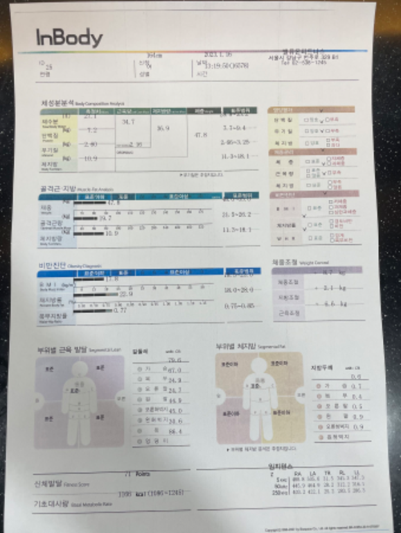 인바디측정하고 나서 제가 원하는 운동목적을 참고해서 측정결과에 따른 앞으로의 운동방향을