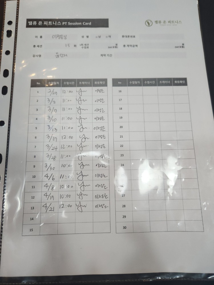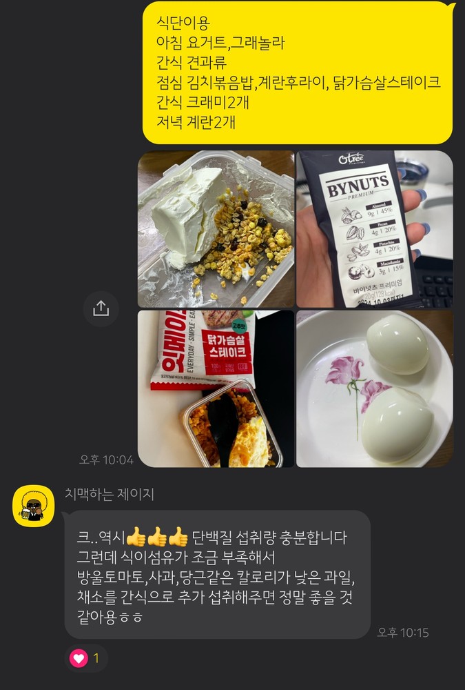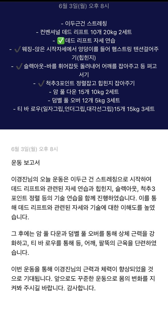 피티 후 운동한 기록도 체크해주시고, 식단관리도맞춤으로 해주셔서 너무 좋았습니다