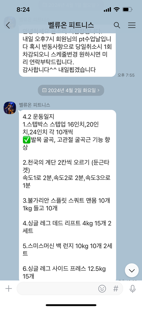 4. 수업일지를 꼼꼼하게 작성&정리하셔서 보내주신다!(수업 중 영상도 꼼꼼히 찍어주셔서 개인운동할 때 도움이 많이 돼요!💗)