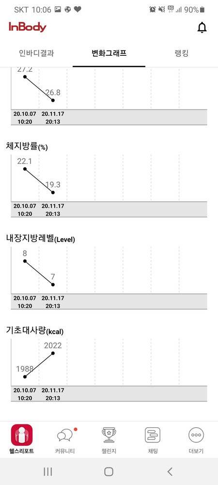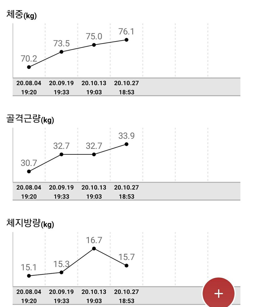 운동한지 3-4개월정도 됐고 체지방량과 몸무게가 많이 빠져서 옷이 다 안맞아졌어요. 지금이 22살 이후로 제일 날씬한듯요 ㅋㅋㅋㅋㅋㅋㅋㅋ