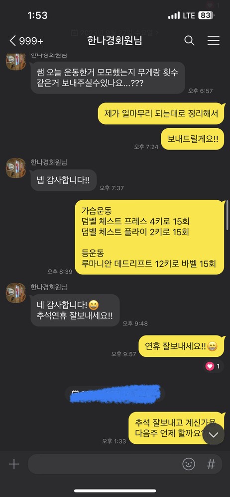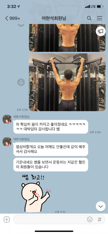 항상 궁금해 하시고 많은 질문들이 좋은 몸을 만든다고 생각해요 ㅎㅎ 또한 개인운동도 너무 잘해주셔서 제가 다 뿌듯했습니다!! 항상 즐겁게 운동하세요!