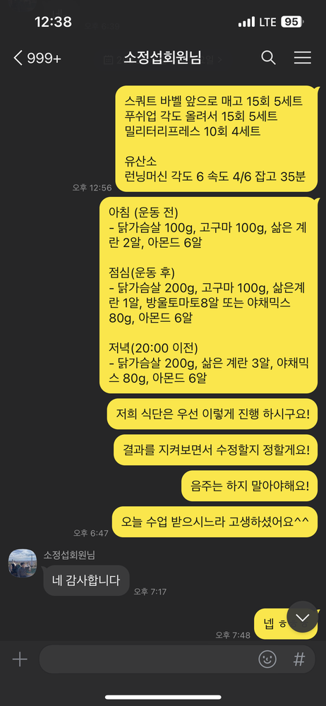 앞으로도 더 좋은 내용의 수업을 해드리겠다고 약속 드리며, 목표 체중까지 멈춤없이 도달할 수 있도록 우리 더 열심히 해 봐요!!