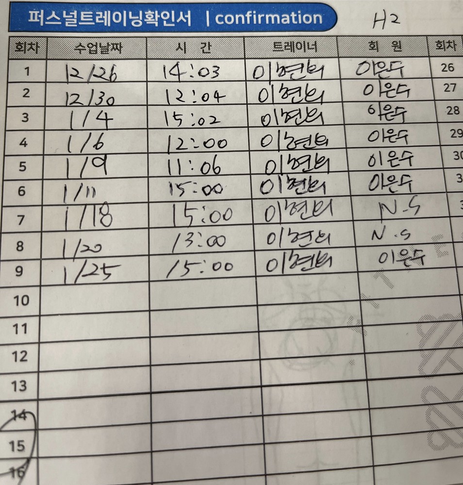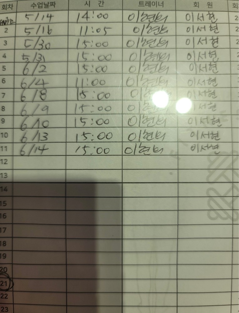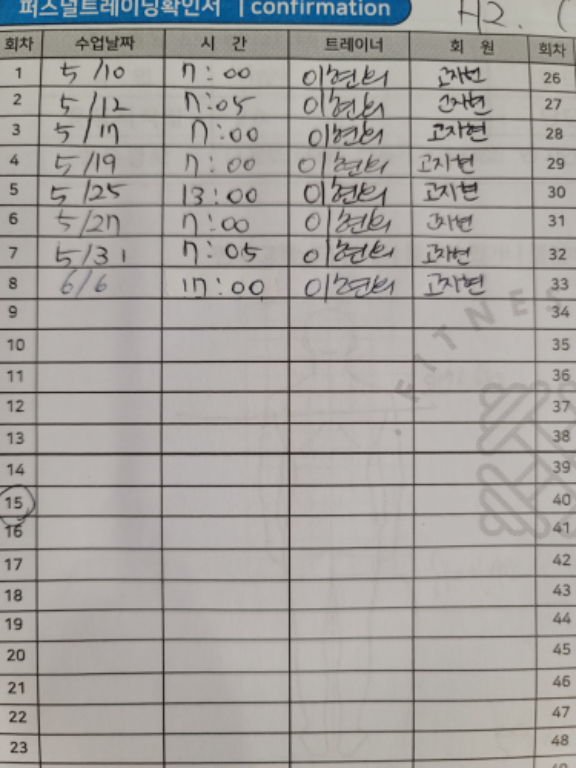 제가 급히 출장 갈 일 있어서 15회를 끊어서 일주일에 3회 만났습니다. 현희쌤이 체질과 체력에 맞게 운동을 해주시고 엄살과 진심 힘듦을 아주 잘 구분하셔서 운동을 가르쳐주셔서 좋았어요. 식단도 잘 봐주시고 꾸준히 운동하는지 체크해주셔서 되게 좋았어요. 영국 갔다오면 아마 다시 함께 하지 않을까 싶어요.