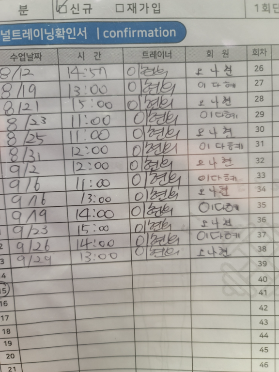 다른 곳에서 pt 25회를 했었는데 혼자 헬스장을 가면 할 수 있는 게 없더라구요. 주변 헬스장 정말 많이 찾아보고 발품팔아서 선생님을 찾아 등록했습니다. 선생님이랑 수업하면서 혼자 루틴짜서 운동 할 수 있게 되었어요!