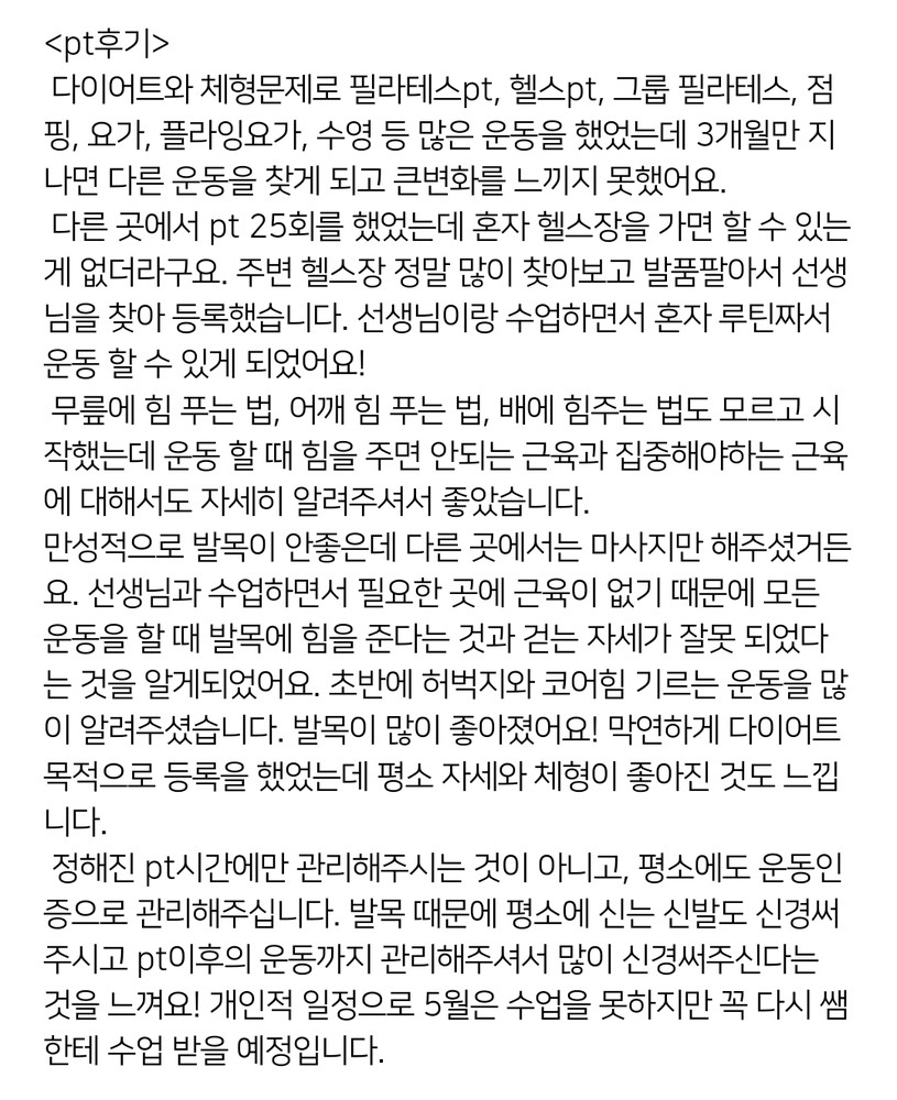 PT 받은 분의 만족도와 후기가 엄청나더라고요!!