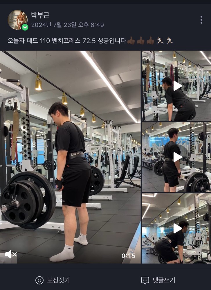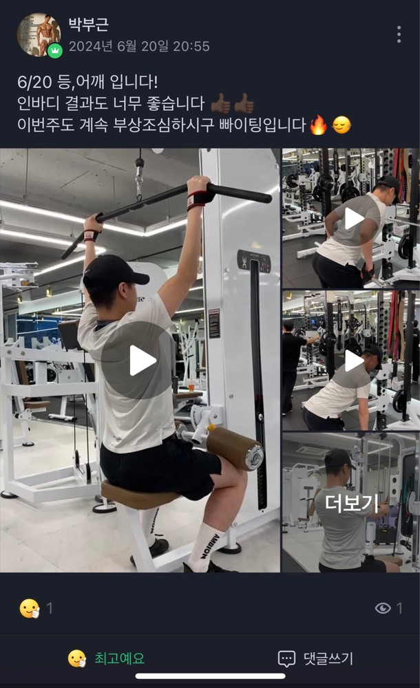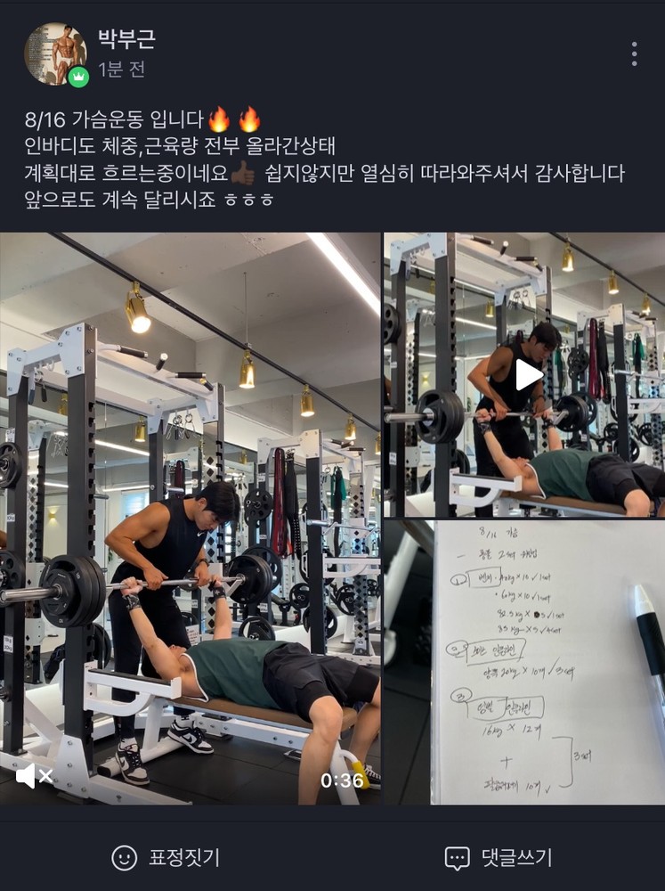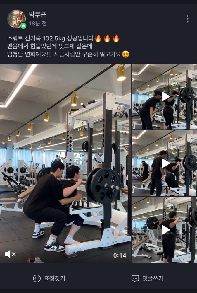 프로필에 태권도하신게 있어서 처음부터 뭔가 더끌렸던 부근쌤!! 태권도만 했던 저에게 웨이트의 재미를 만들어셔서 감사합니다~