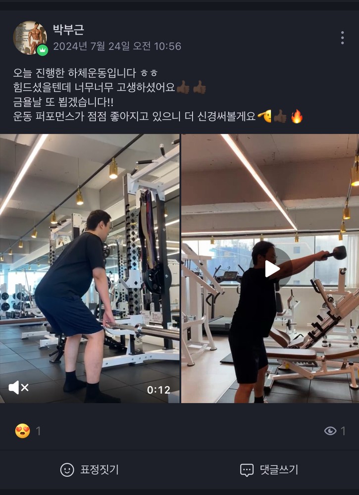 아직 조금은 부족하지만 이젠 혼자서도 운동을 하고 식단도 어떻게 구성해 먹는게 가능합니다 ㅎㅎ 몸을 키우는 것보단 운동 자체가 이제는 즐겁습니다 운동을 안하는 날은 뭔가 어색할 정도네요 ㅎㅎ부근쌤 앞으로도 화이팅 완전 추천드립니다!!