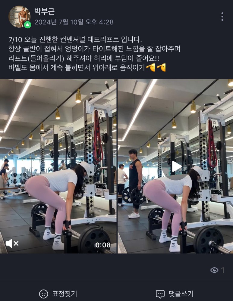그리고 매번 수업 후 그날의 영상과 함께 주의점 등을 바로바로 올려주셔서 개인운동때도 큰 도움이