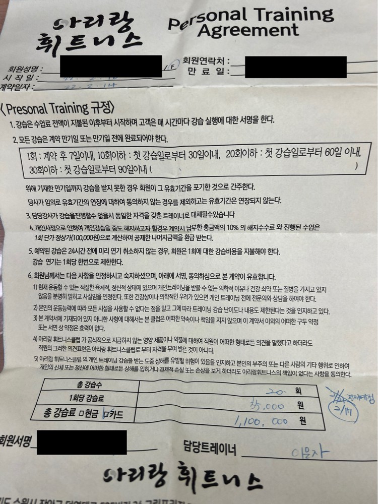 그래서 이번이 마지막이라 생각하고 난생 처음으로 피티를 30회 등록했습니다!