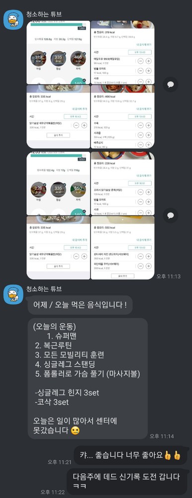 또 수업시간에만 하고 끝나는 것이 아니라 카카오톡으로도 식단관리, 개인운동이나 기타 생활습관적인 부분들을 꾸준히 잡아주셔서 수업 외의 시간에도 도움을 많이 받고 있습니다. 곧 등록했던 게 끝나는데, 재결제할 것 같아요😃