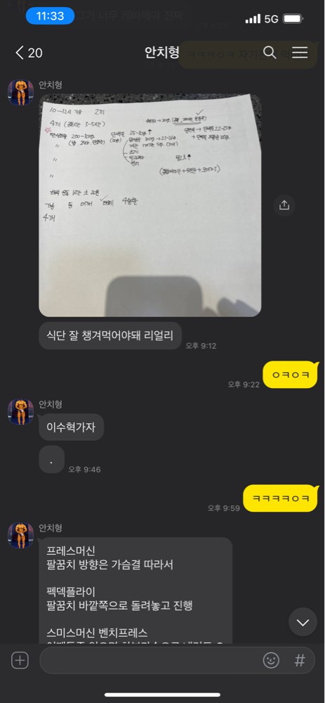 치형쌤께 피티를 4달 정도 받았고 지금도 받고