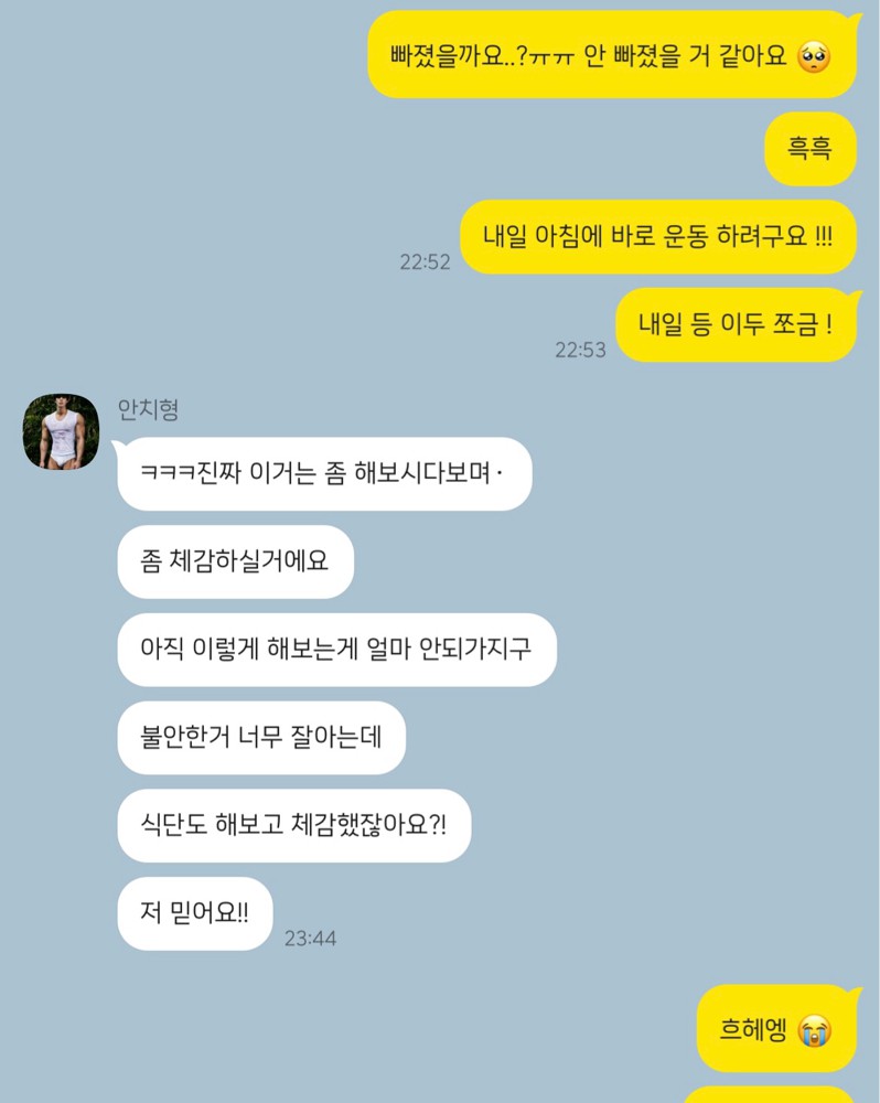 이미 두번의 PT를 실패한 경험이 있었고, 계속된 다이어트의 실패로 심신이 많이 지쳐 있었어요