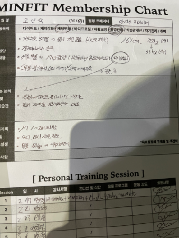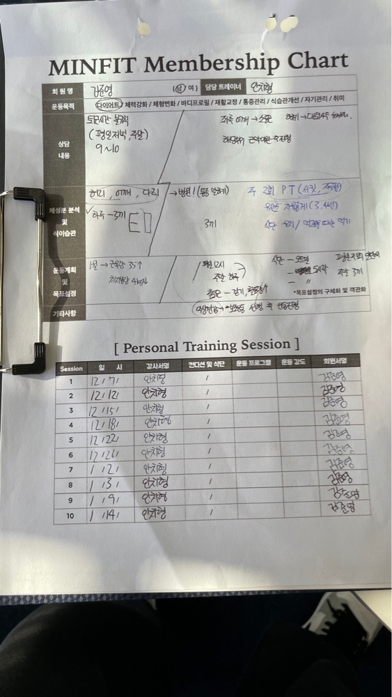처음 헬스장 등록후 받아보는 PT수업이여서 많이 걱정