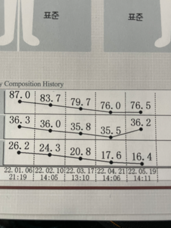 선생님과 PT를 시작했을 당시 인생 최고 몸무게를 찍고 당뇨 초기 허리+무릎+발목의 통증을 가지고 있었어요