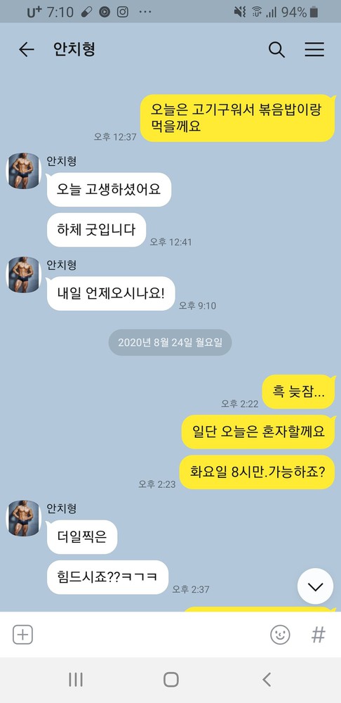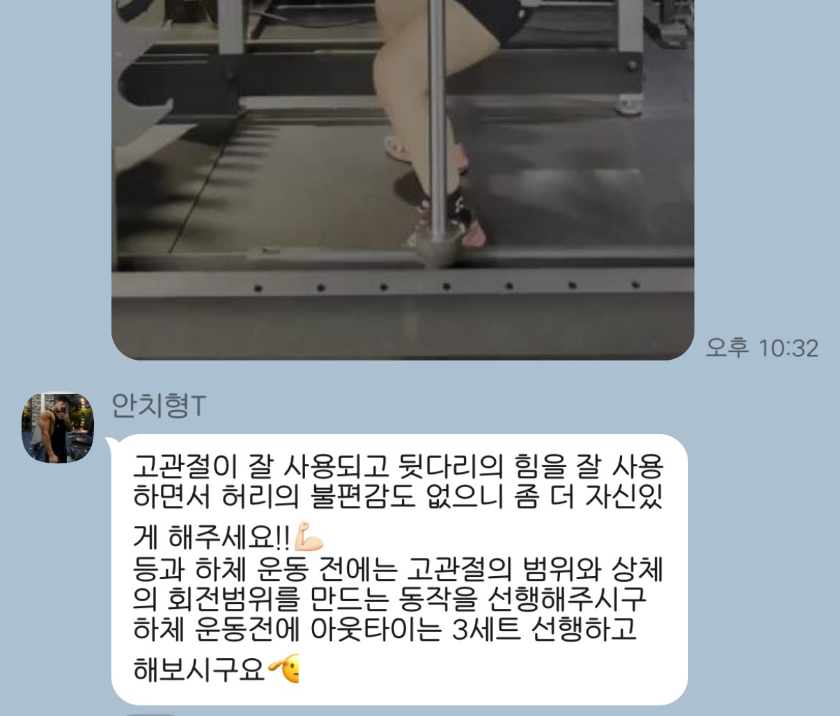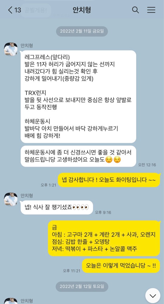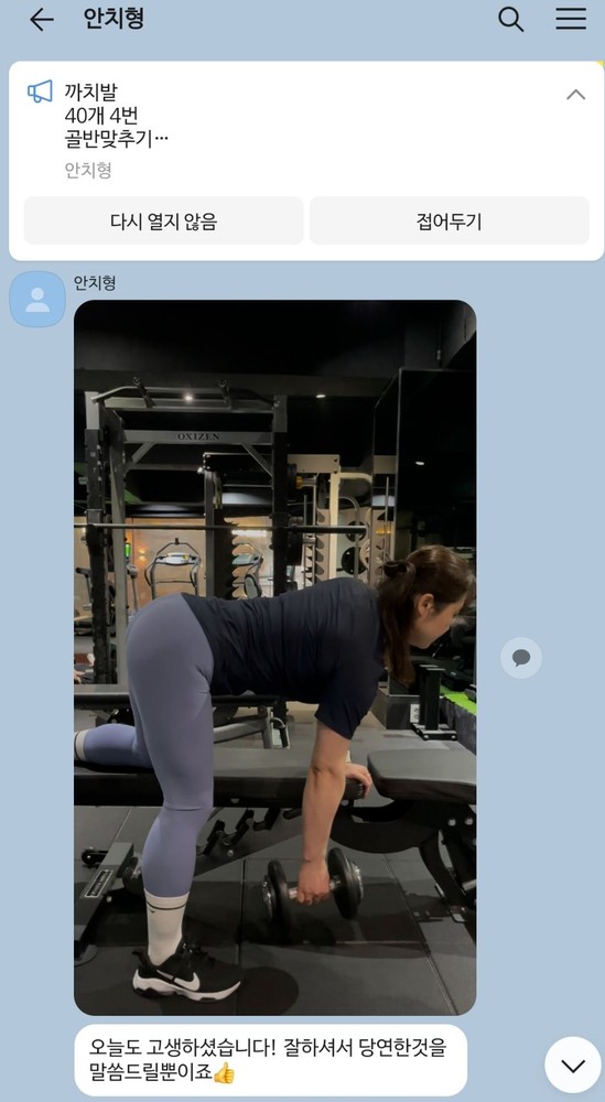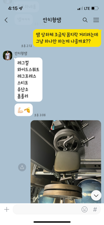 카톡으로 항상 체크해주셔서 트레이너님 덕분에 즐겁게 운동하고 있습니다.