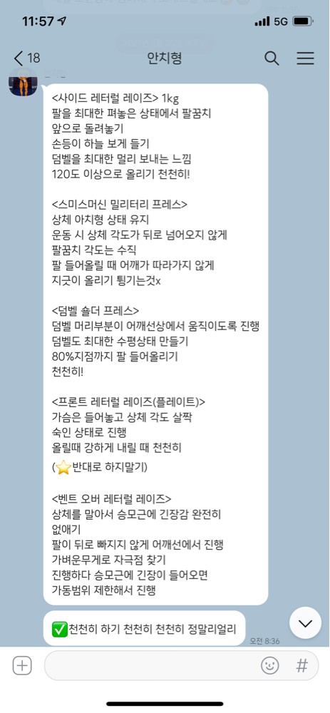 첫 PT 선생님을 치형쌤을 만나게되어서 너무 다행이고 주변에서 PT수업 돈아깝다는 말도 많았지만 저는 전혀 아깝지도 않으며 앞으로도 계속 이어나갈 생각입니다! 🙏🏻