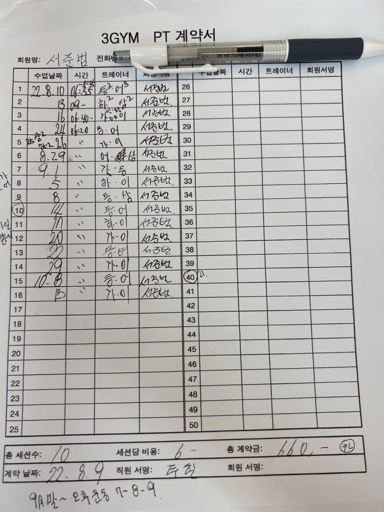 주3회 / 50회중 48회 pt진행했습니다.
