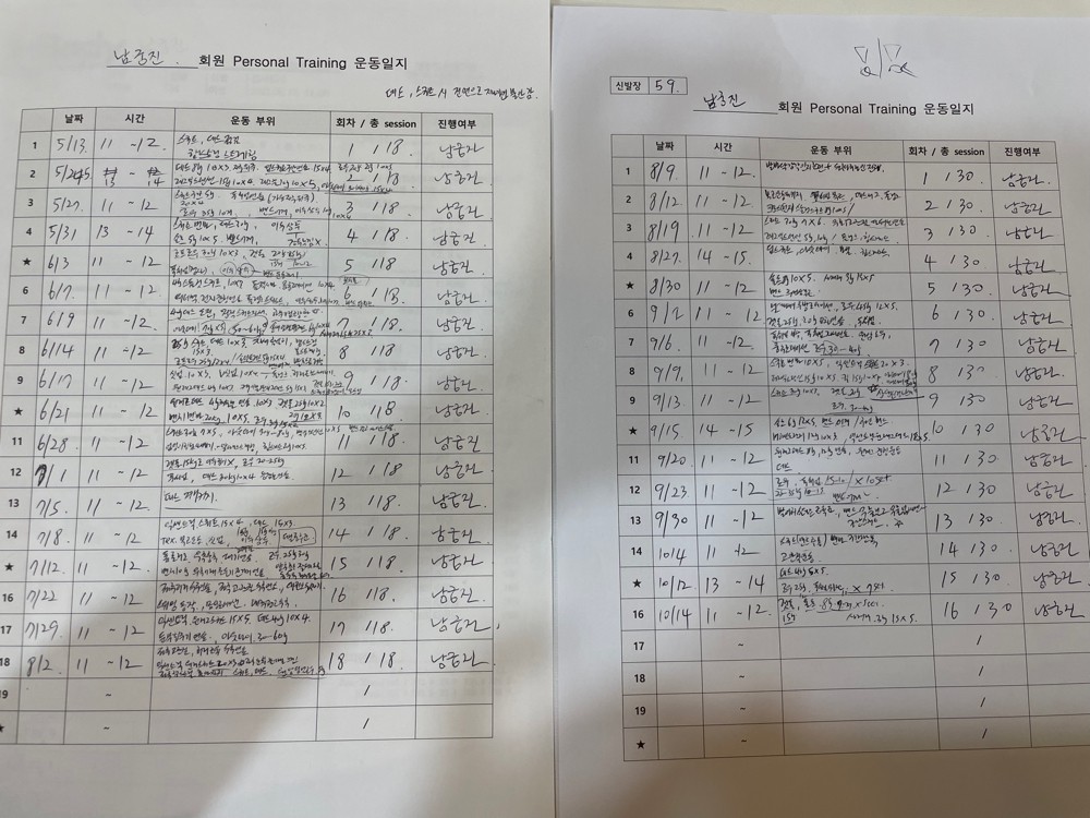 일기쌤과 피티를 시작한지 50회와 50회 재등록..!