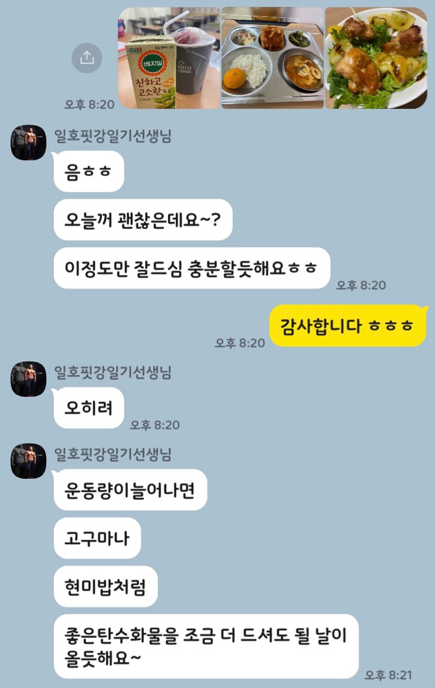 하였고, 일기쌤과 PT 수업을 진행하면서 10kg 이상