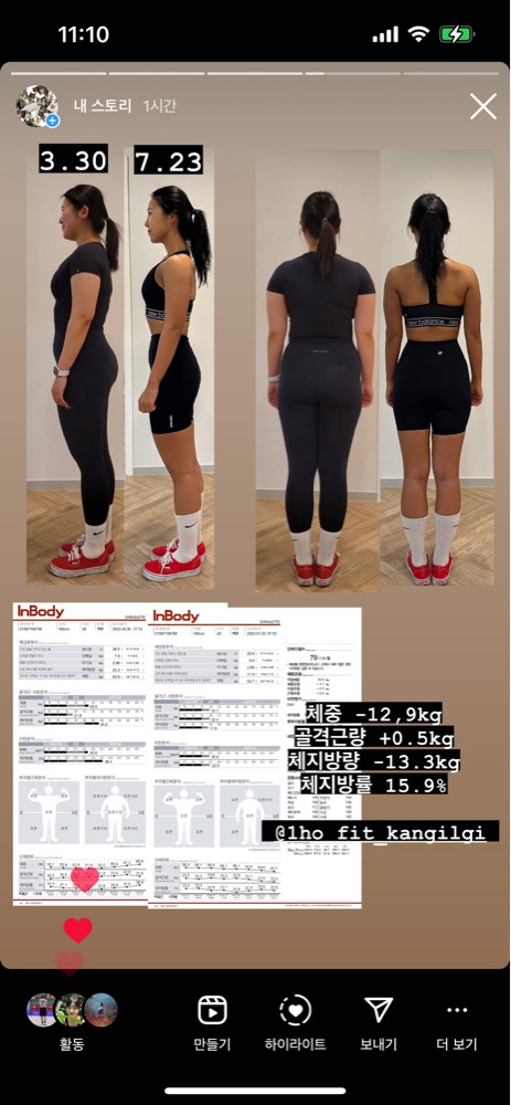 일을 하며 꾸준히 운동을 하는게 어려웠지만 끝까지 이끌어 주시는 대표님 덕분에 목표했던 바디 프로필도 무사히 마칠 수 있었습니다👍