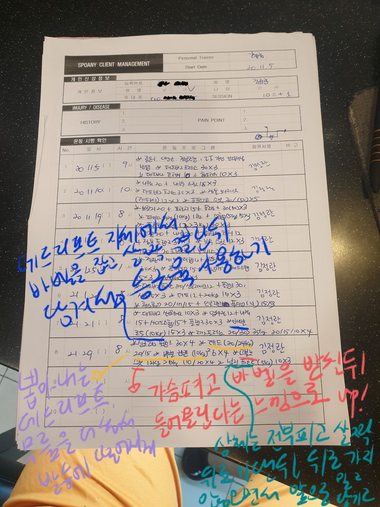헬스장 다니며 피티 여러번 받아봤지만 이렇게 각자의 몸의 맞는 운동을 시켜주시는 선생님은 처음이였어요