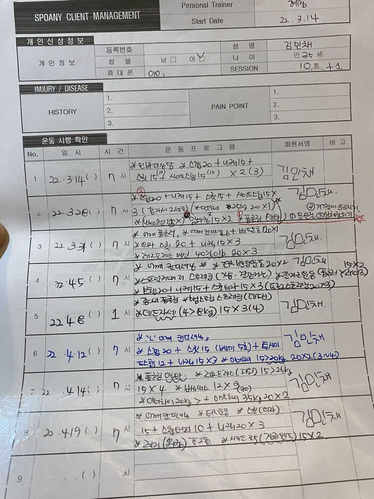 음...솔직히 다른헬스장다니면서 피티는 한 2번 각각 다른선생님께받아본것같아요 그러다. 혜림쌤한테 정착하게된 이유 정말많지만 다들 척추측만 체형에따라