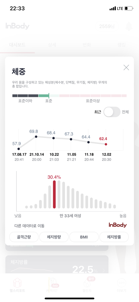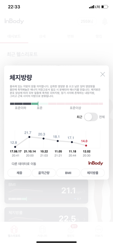 최근 건강검진에서는 진짜로 제가 원하던 ‘인바디 표준’ 결과지도 받았습니다!