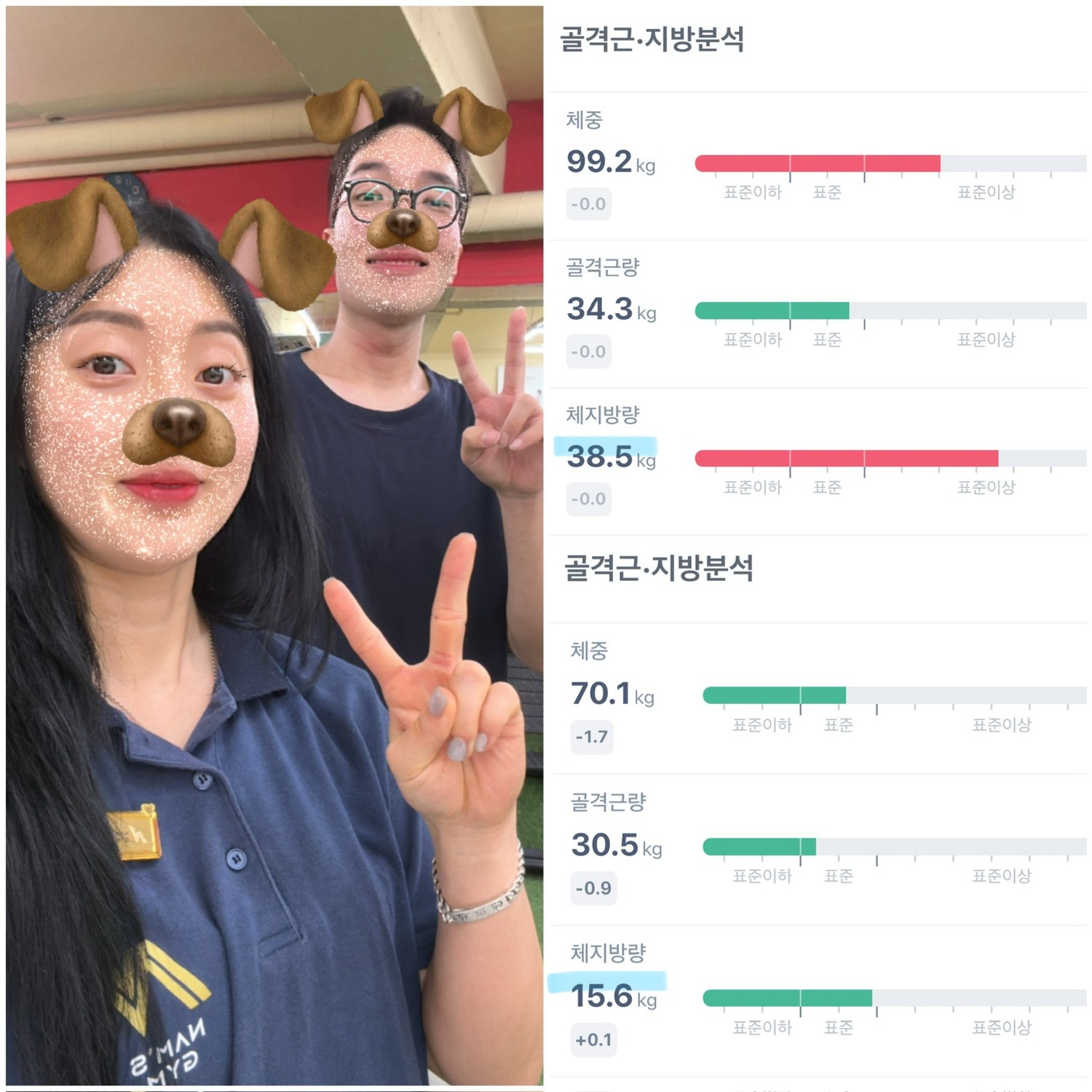 운동을 일괄적으로 단순하게 진행하는 것이 아닌 회원들 개인에 맞게 목표를 설정해주고, 그에 따른 각자에게 맞춘 식단과 운동 그리고 재활에 대해서도 많은 공부를 했기에 믿고 따르기만 했더니 끝날때에는 두가지를 동시에 이뤘습니다!