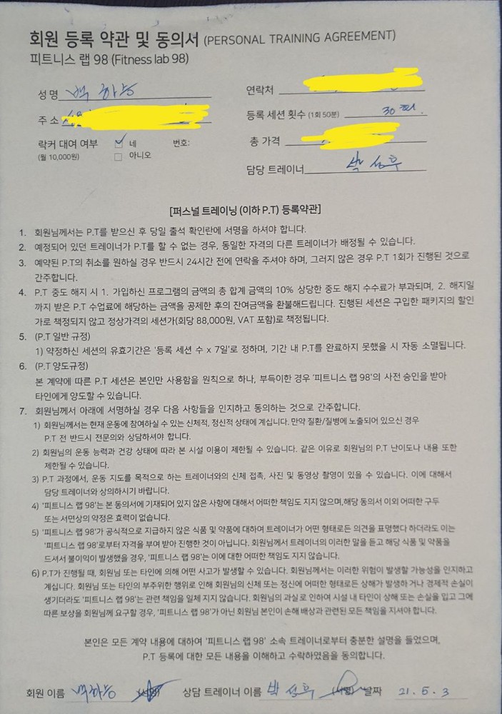 옛날에 피티 받으러 갔다가 1회 하고 환불받았던 기억이 있어서 신중하게 결정을 했는데요