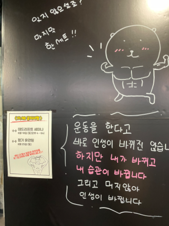 “저한테서 운동 졸업하셔아죠" 성후쌤이 제게 하셨던 말씀이에요. 제 인생의 운동은 숨쉬는 것 뿐이였는데 첫 운동을! 좋은쌤 만나서! gym오는게 즐거워 매일옵니다!