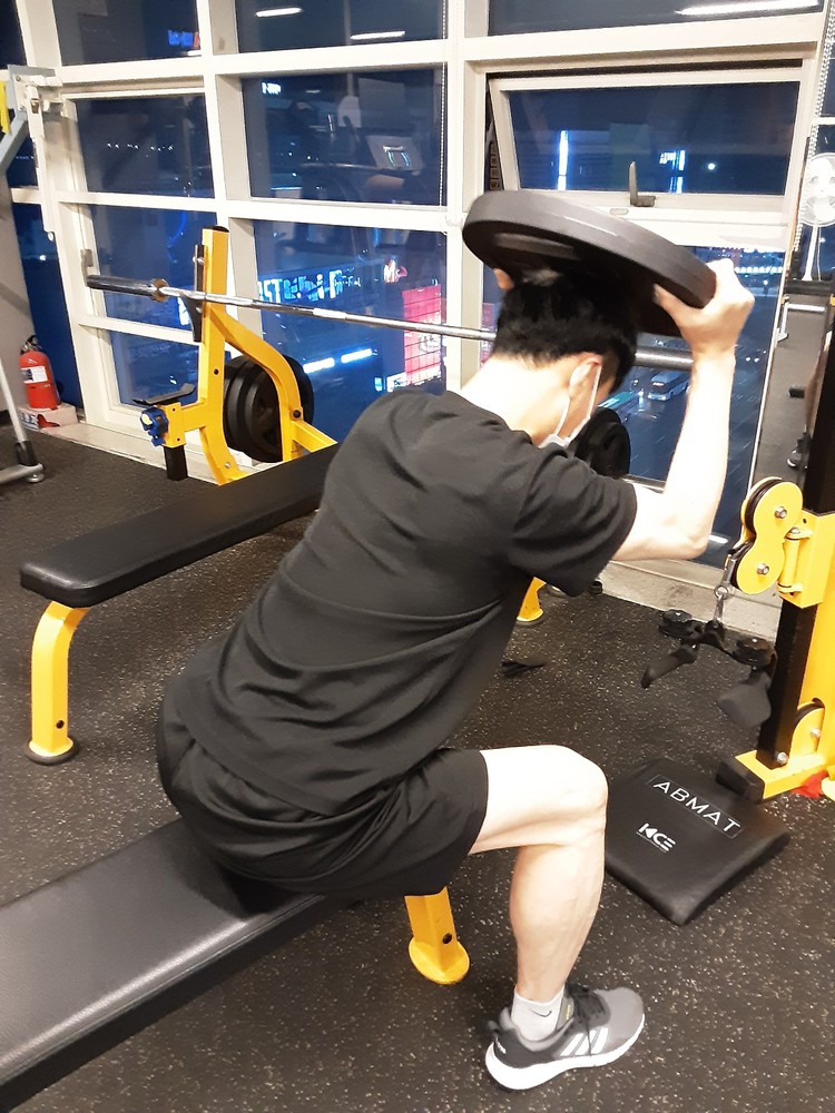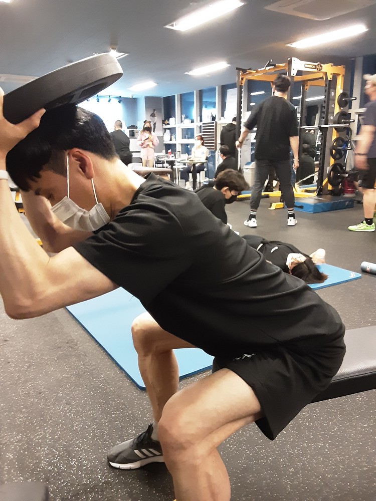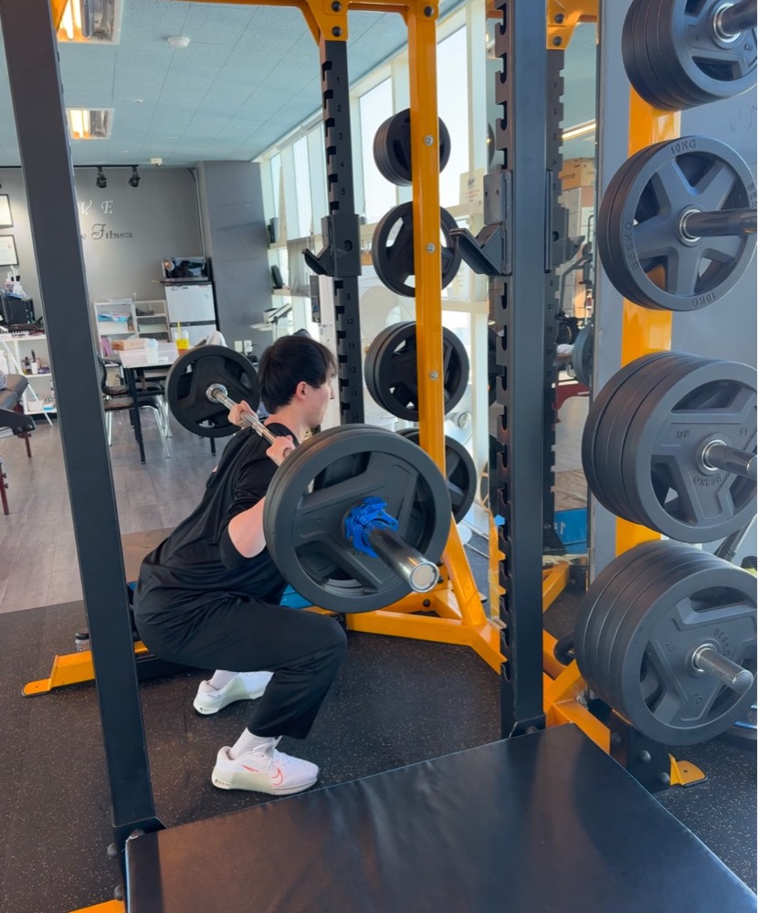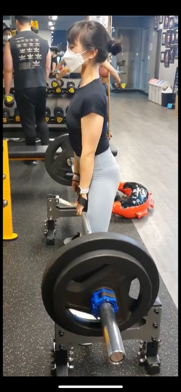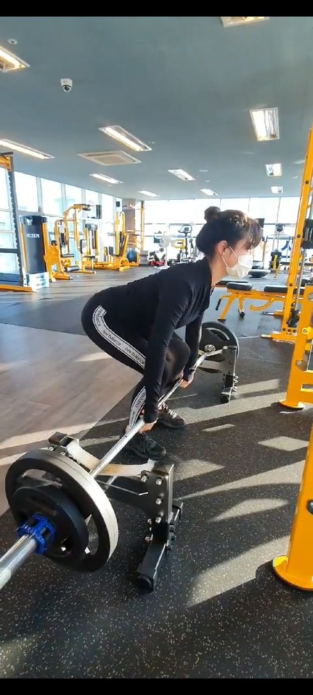 제가 처음 등록할땐 데드리프트 45kg도 기립근에 힘이없어서 등이 많이 말렸는데, 현재는 스모데드로 90kg로 세트운동할정도예요.