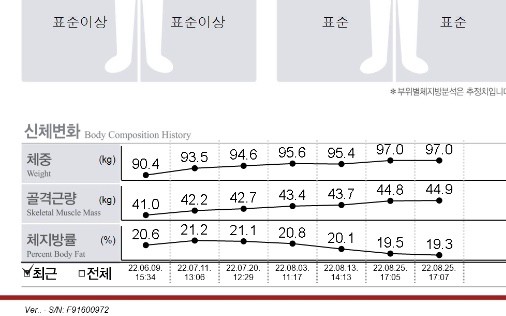 작년대비 몸도 훨씬좋아지고 근육량은 오히려 높아지고 체지방은 컷트 ^^
