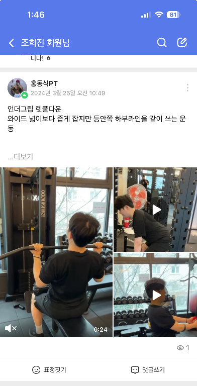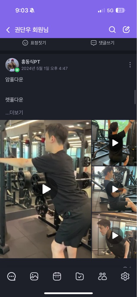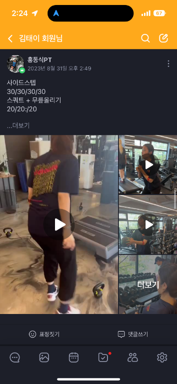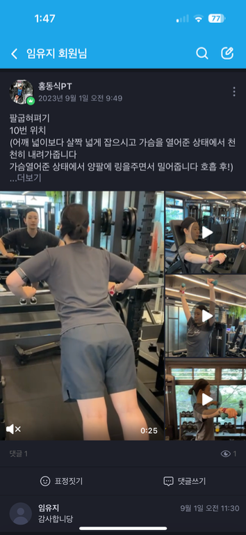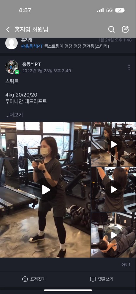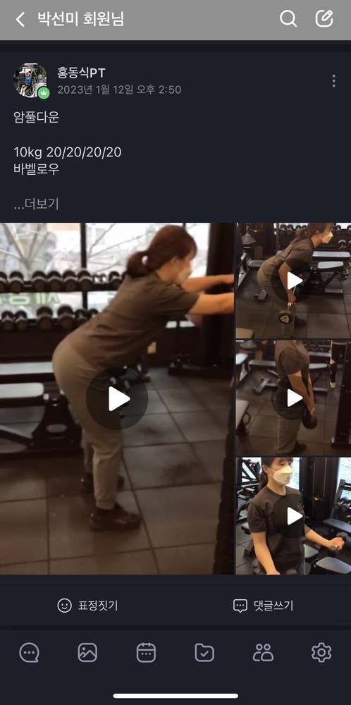 수업 끝 난 후에는 밴드에 당일 운동했던 영상 올려주시고 주의점도 같이 적어주셔서 혼자 운동할 수 있도록 해주십니다👍