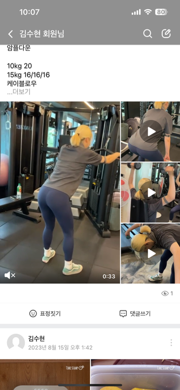 선생님 덕분에 재밌게 운동하고 있어요! 살도 많이 빠졌고 주변에서도 많이 알아봐서 만족스러워요.pt받을 때마다 자세를 촬영하셔서 밴드에 운동 내용을 업로드 해주시는데 개인 운동할 때 도움이 많이 돼요😀😀 식단과 체중도 밴드에 업로드 하면 체중 변화에 따라 식단에 피드백을 주셔서 스스로 조절 할 수 있도록 해주세요.