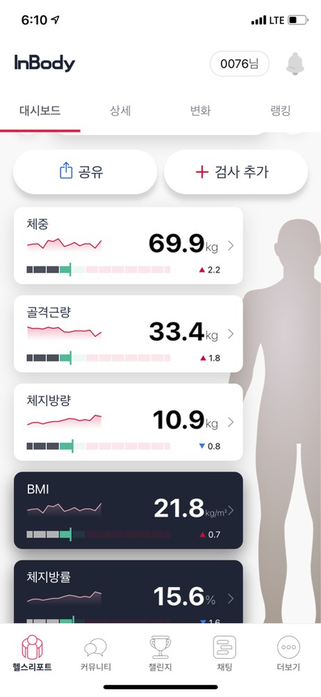 pt 후 개인 유산소도 저한테 맞게 알려주시고 덕분에 근육 증가가 목표였는데 근육 증가와 함께 체지방은 떨어지고 있어서 너무 뿌듯해요👍🏻👍🏻